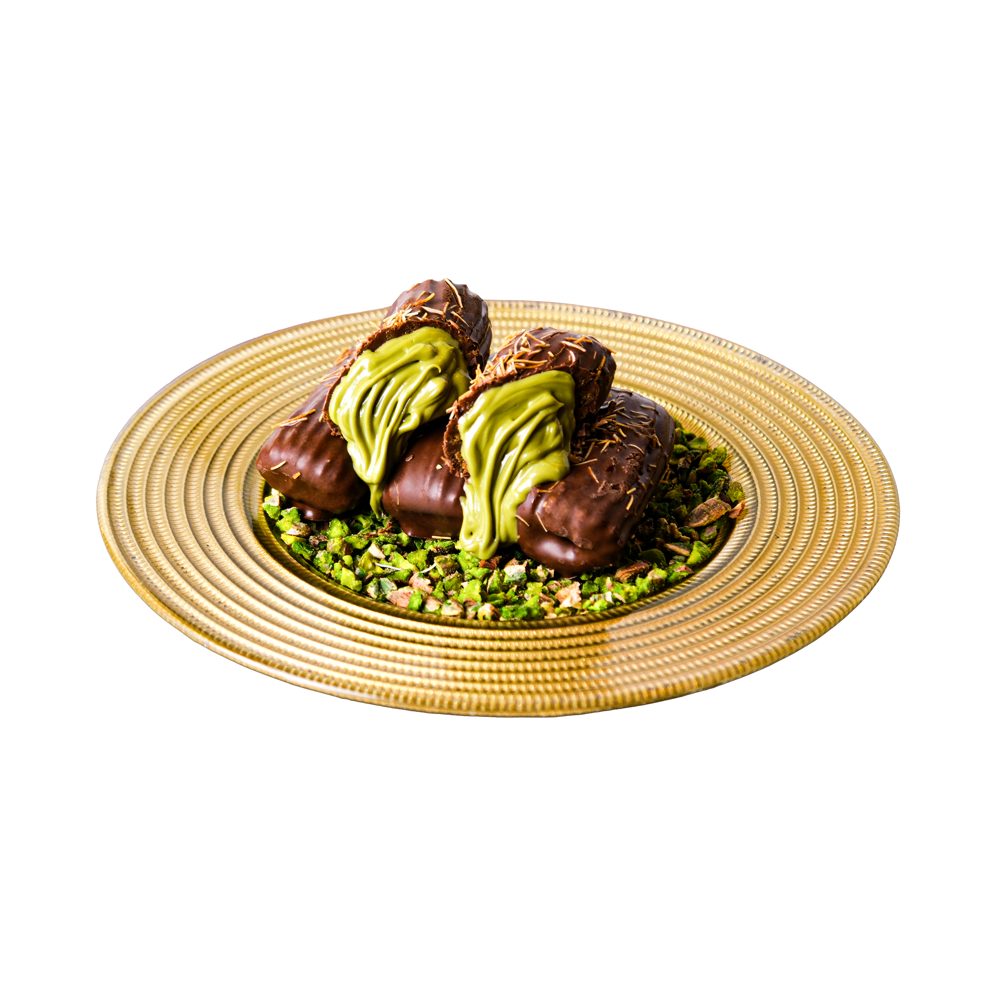 İçi fıstık dolgulu, dışı çikolata kaplı şerbetsiz tulumba.